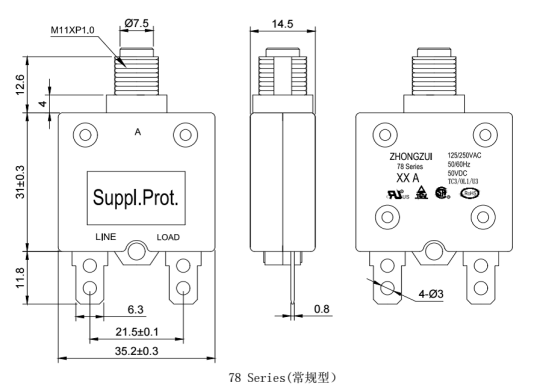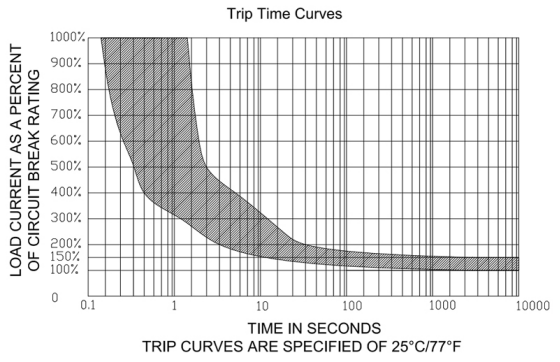跳脫時(shí)間及電流跳脫曲線圖@+25℃ Time VS.current Trip Curve @ +25℃ |